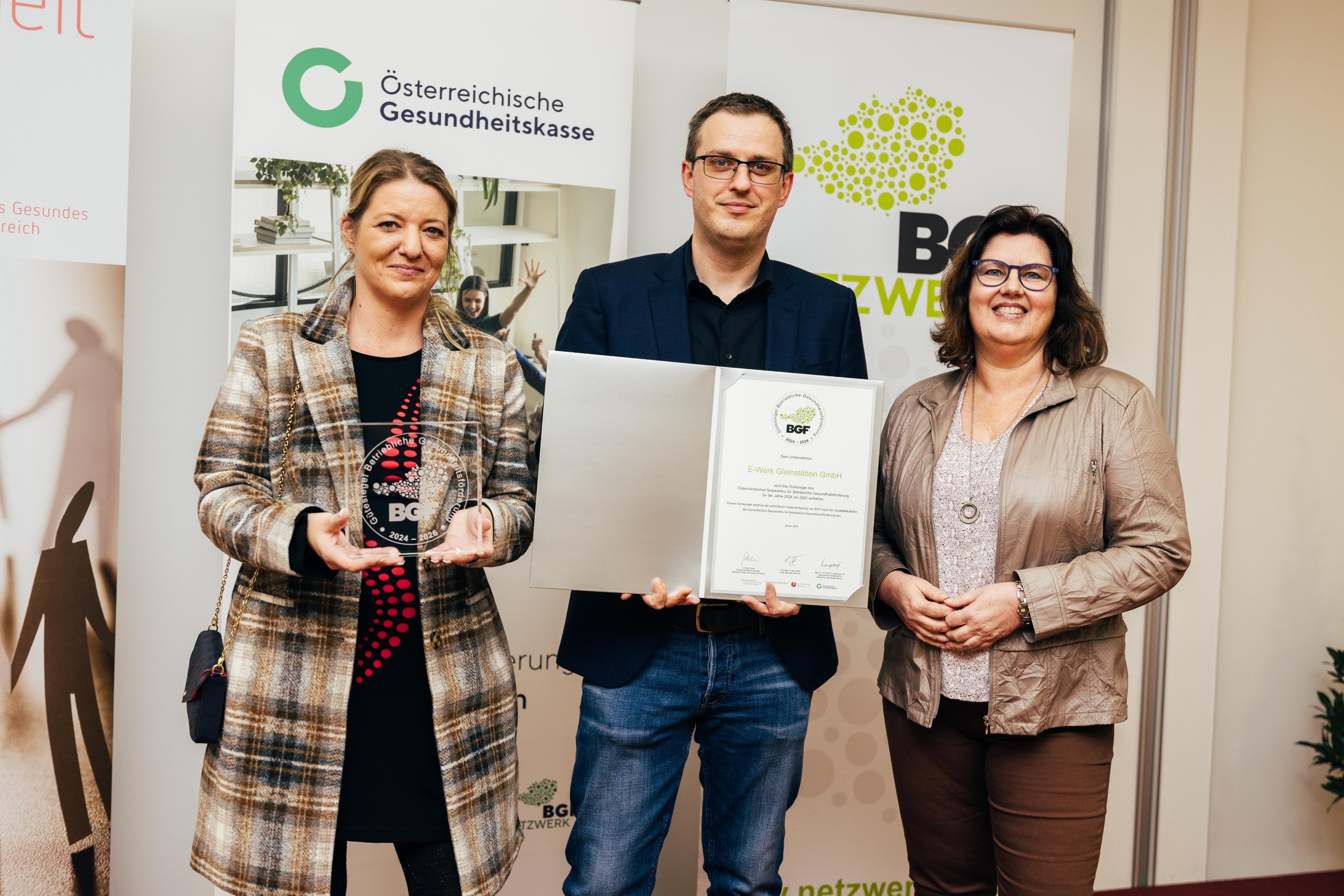 SinnWin BGF Kundin KTG Austria I E-Werk Gleinstätten GmbH wird BGF (Betriebliche Gesundheitsförderung) Gütesiegel 2024-2026 erneut verliehen.